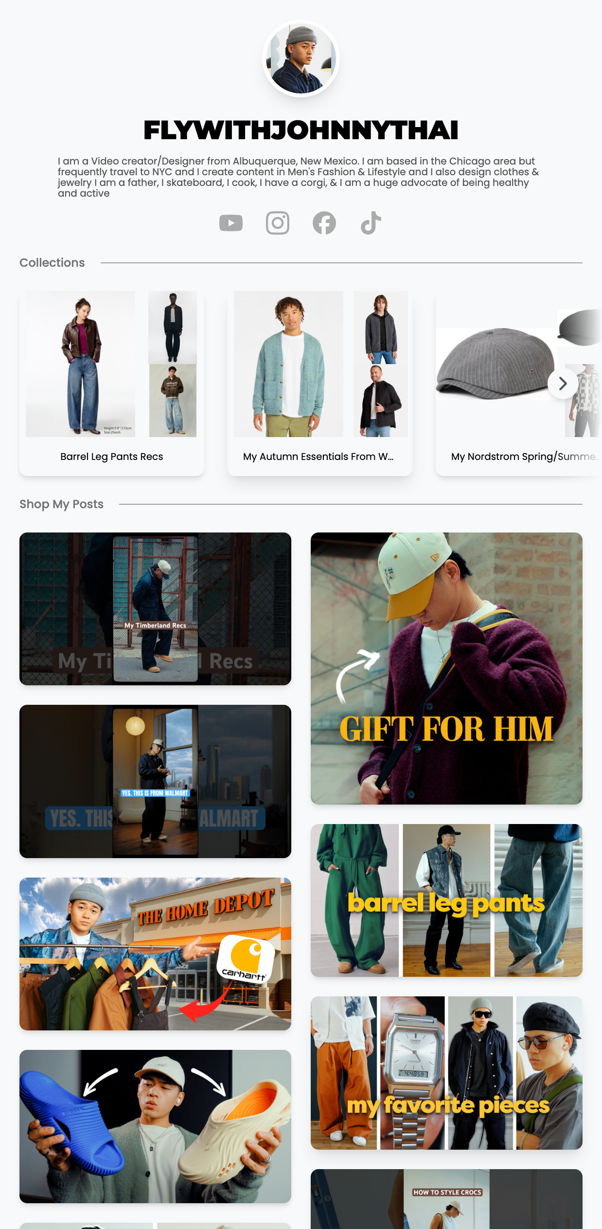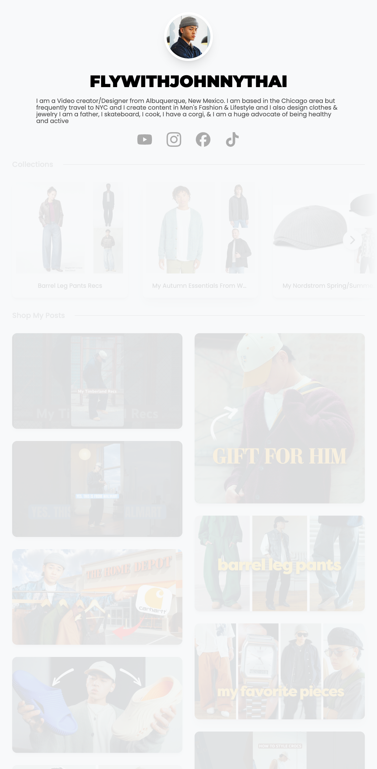 Shoppable Posts are photo or video content that include product links. Shoppable posts are displayed under Product Collections in your storefront as an infinite scroll experience. This is designed to keep your content in front of audiences longer. Shoppable Posts can also be shared as a stand alone link. You can add Shoppable Posts by uploading content directly from your camera roll or by adding a live link from YouTube, TikTok. Instagram, or Pinterest.